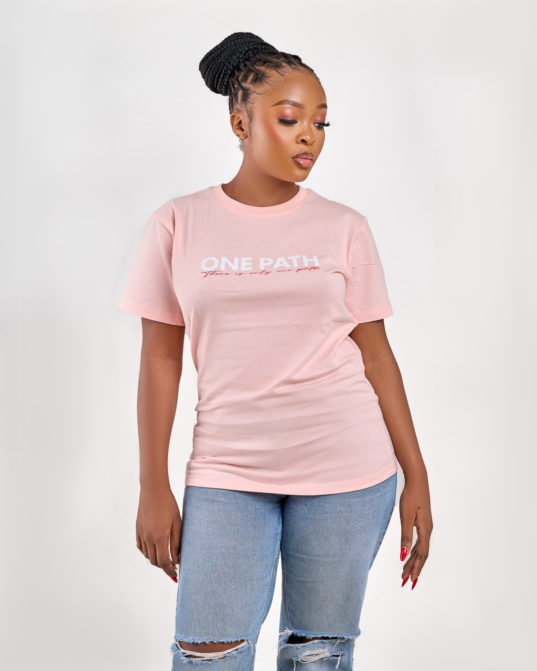 Crafted from 100% premium cotton, this shirt delivers comfort, breathability, and a clean silhouette that keeps up with your mindset. The minimalist yet bold design features the powerful slogan on the front and a “44” print on the sleeve — a subtle nod to the resilience behind the path.